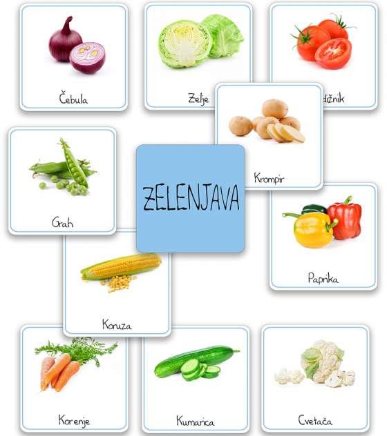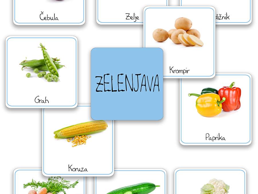 - povezovanje kartic (npr. katera zelenjava je določene barve)